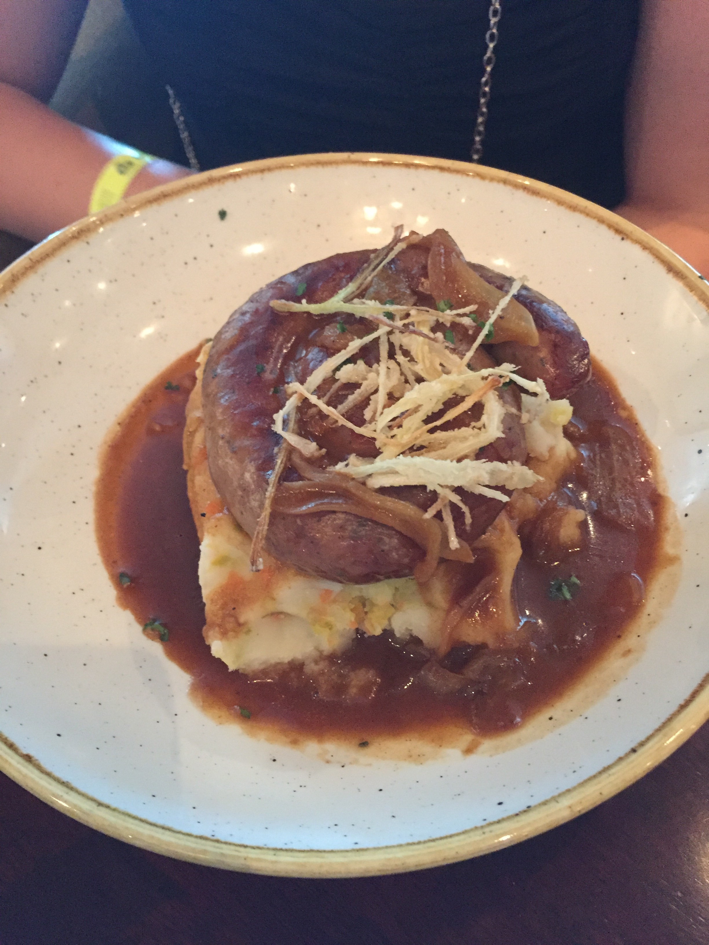 Emma got a lovely baked Cumberland sausage with an onion gravy, set in a bed of bubble and squeak (cabbage and mashed potatoes) I got fish and chips…the chops there were a far lovelier cut of potato than the fries served elsewhere on board, I loved them.