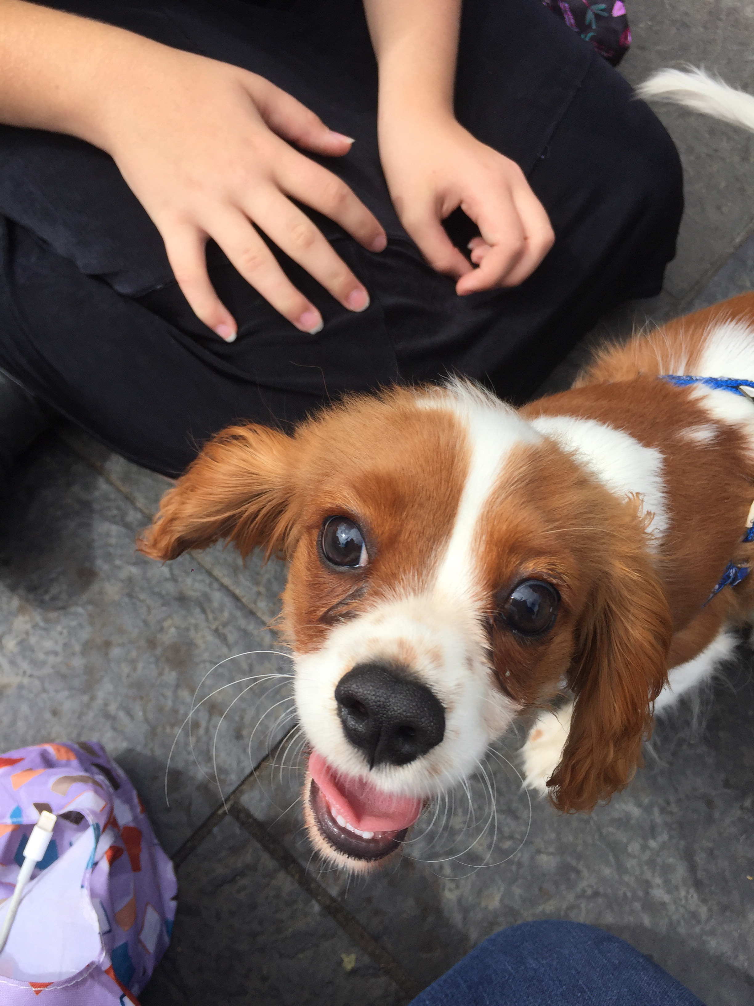 We NEEDED a frappuccino, and though I didn’t get a photo, they spelled Anna and Catherine correctly (our Christian names) though I was sorely disappointed in the lack of a Venti size in the Fraps. We also met this cute puppy on our way out.