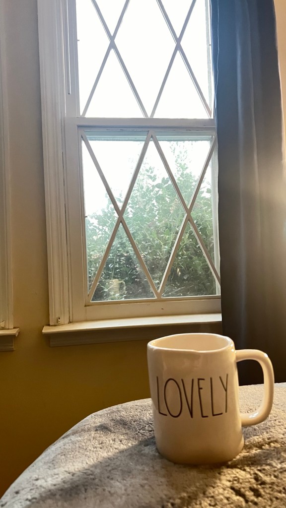 I shuffle into the kitchen for coffee, the cats wait outside my door to tell me they’re starving and their water bowls need filled; I of course oblige. I decide on my coffee cup for the day, I have many as I collect them and they match my moods. I set it at the Keurig and proceed to load the dishwasher. I assess the laundry situation and decide there isn’t enough dirty for a load yet. I wash my hand washables and put my coffee on.